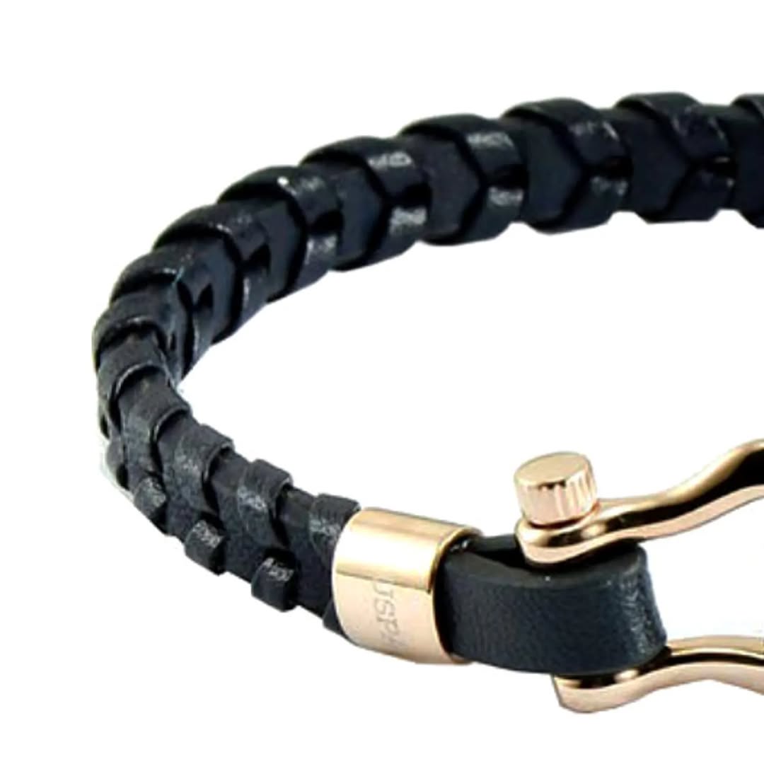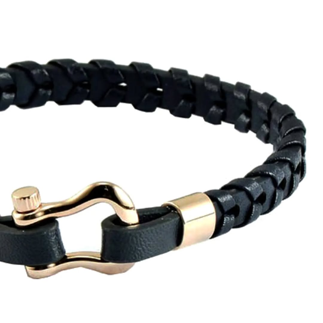 دستبند استیل و چرم سگک استیل طلایی چرم سرمه‌ای